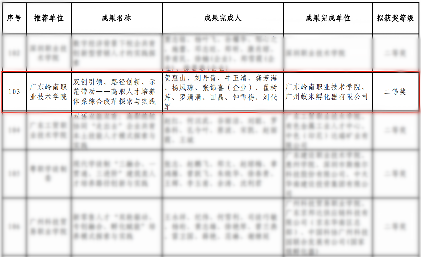 蚁米与岭南职院联合申报的“双创引领、路径创新、示范带动--高职人才培养体系综合改革探索与实践”项目荣获广东省教育教学成果二等奖。